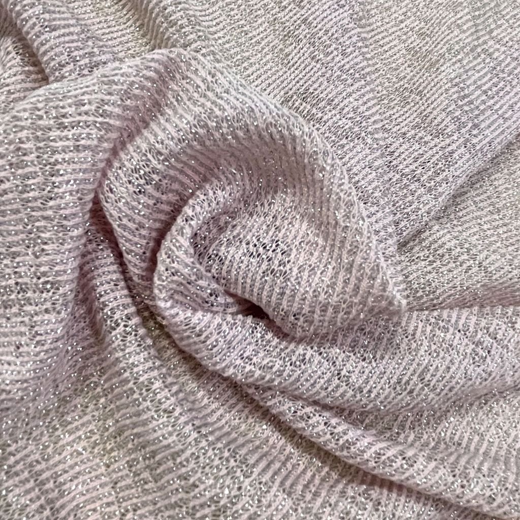 Трикотаж тонкая вязка серебро розовый