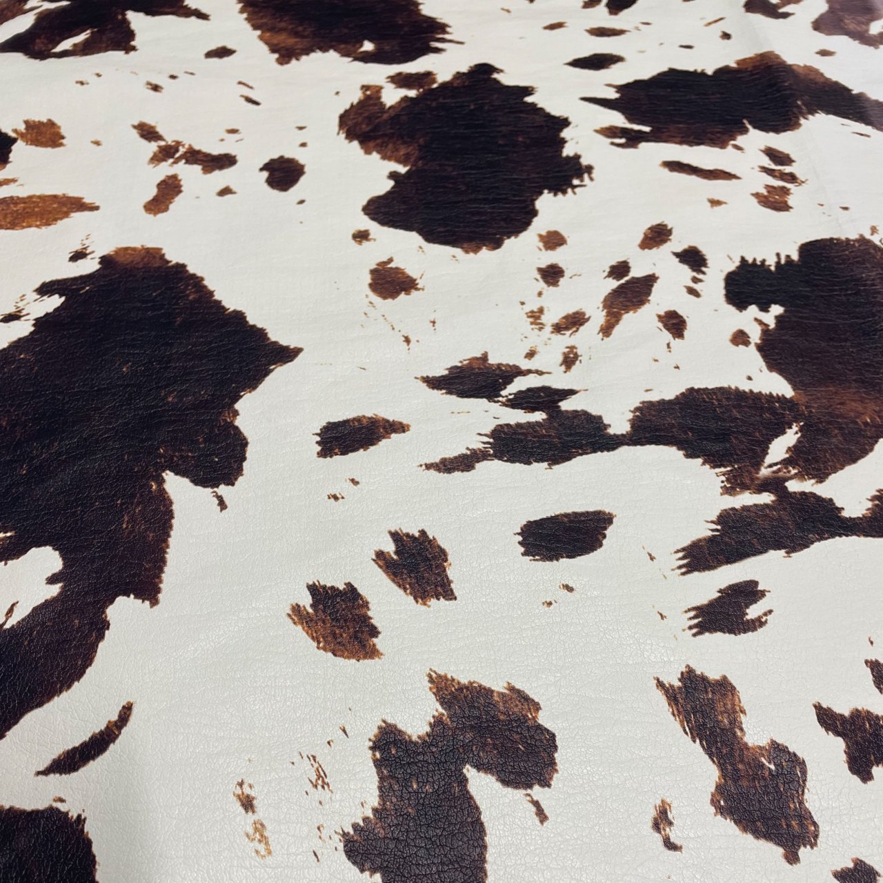 Один из самых актуальных принтов с рисунком имитирующим кожу коровы. Достаточно мягкая и приятная на ощупь. Выполнена заливным способом на основную поверхность ткани - подложки. Не тянется. Прекрасно подойдет для пошива юбок, брюк, курток и т.п. Так же как элемент декора на изделия.