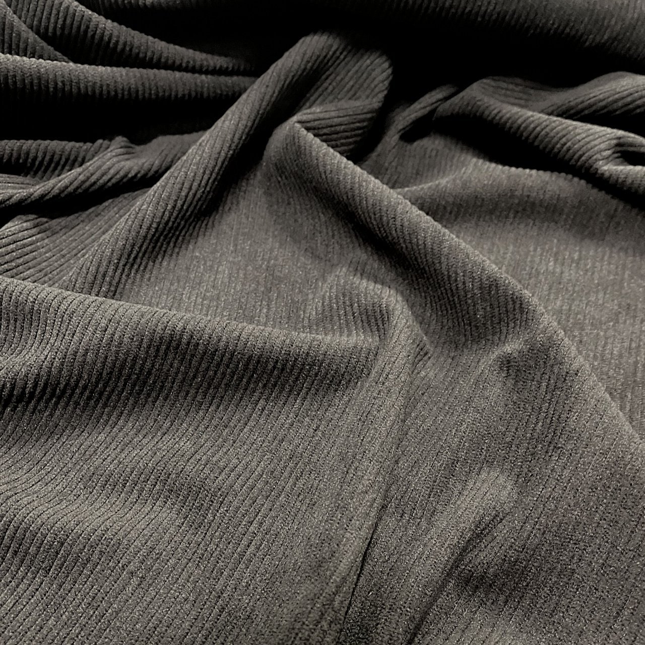 Плотный, и в то же время приятный материал с матовым блеском по лицевой стороне и нежной бархатистой поверхностью. На лицевой стороне классический ворс, создающий фактуру в полоску. Хорошая плотность ткани обеспечивает ее высокую износостойкость. Вещи из вельвета всегда актуальны, удобны в носке и не мнутся. Ткань прекрасно подходит для пошива свитшотов, платьев, юбок, а также спортивных костюмов.